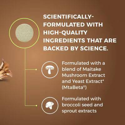 - Formulated with a blend of Maitake Mushroom Extract and Yeast Extract (MtaBeta®)