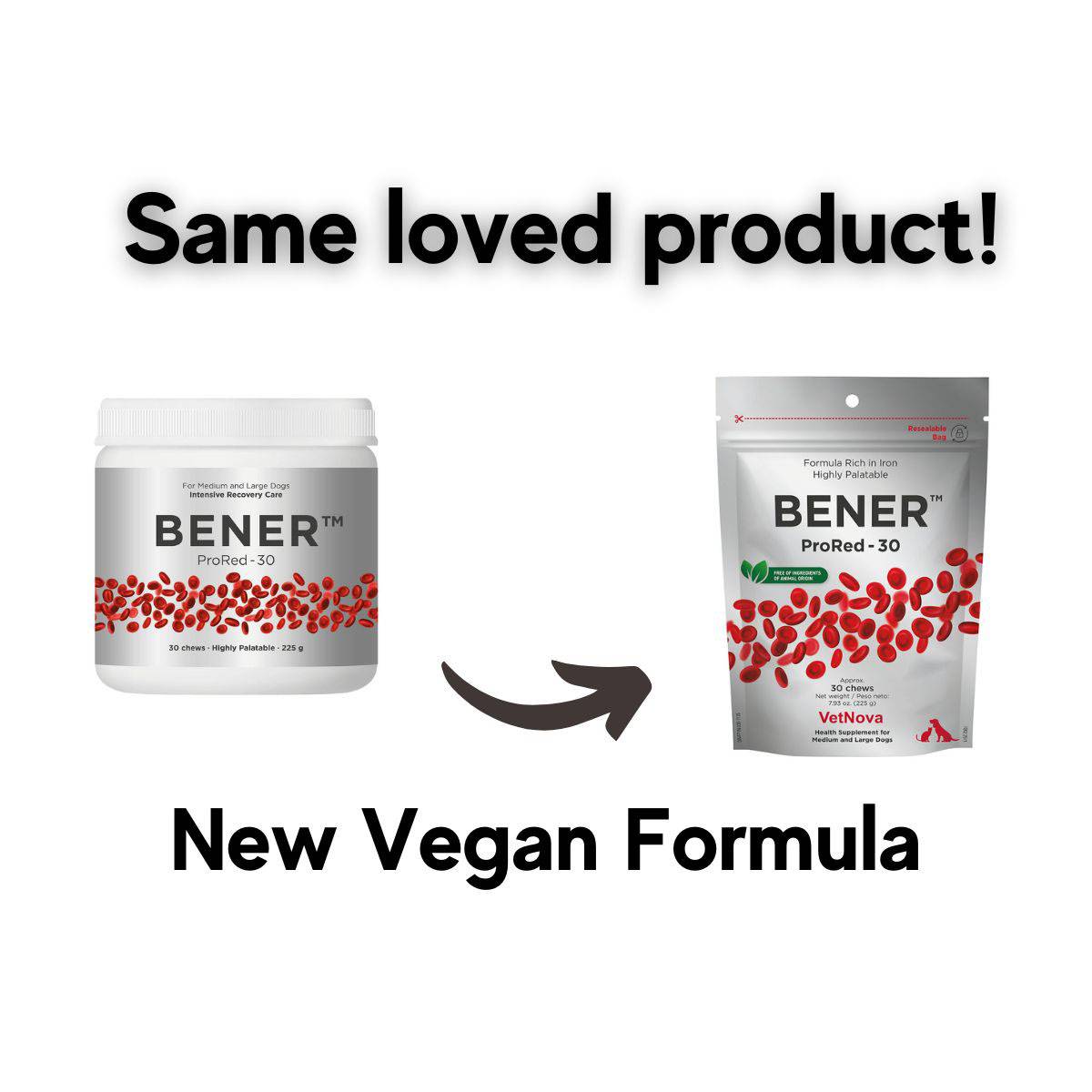 • Bener ProRed is a high-strength iron, copper, and multi-vitamin supplement that supports recovery care and well being for dogs and cats.