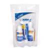 The Oratene Brushless Oral Care Kit contains a 1 ounce bottle of Drinking Water Additive, a 1.25 ounce bottle of Breath Freshener and a 0.5 ounce Oratene Toothpaste Gel. The other Oratene product sizes are listed below. Antiseptic Oral gel comes in 1 ounce tubes, the Oratene toothpaste gel comes in 2.5 ounce tubes, the Oratene Breath Freshener comes in 4 ounce bottles and the Oratene Drinking Water Additive comes in both 4 and 8 ounce bottles. When selecting a product to purchase it will display the product, size and price.