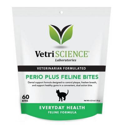 Perio Plus Bites help support healthy gums and teeth for your pet between veterinary dental exams. The bites feature both a crunchy and chewy side to help clean teeth and freshen breath while supporting strong gums. They contain probiotics to promote good bacteria in the mouth and CoQ10 for gum health. Perio Plus Bites help prevent the buildup of oral plaque and have a great flavor your pets will enjoy. Available in 60 chew for cats and 60 sticks for dogs.