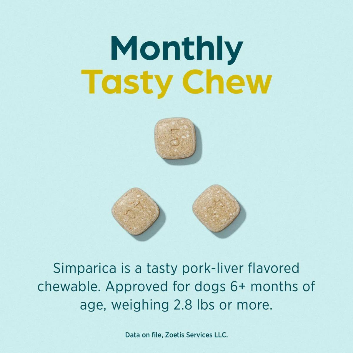 Simparica is only available from the manufacturer in a chewable form with a pork liver flavoring. For additional questions concerning an appropriate product for your dog, you should contact your veterinarian.