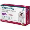 Simparica Trio is a monthly chewable for dogs that prevents heartworm disease, treats intestinal parasite infection, and kills fleas and ticks. For heartworm prevention, Simaprica Trio should be administered at monthly intervals year round or at least within one month of the animal’s first seasonal exposure to mosquitoes and continuing until at least 1 month after the dog’s last seasonal exposure. For Flea Treatment and Prevention and Tick Control: Simparica Trio should be administered year-round at monthly intervals or started at least one month before fleas and ticks become active. For the treatment of roundworm and adult hookworm infections: Simparica Trio should be administered once as a single dose. Monthly use will control any subsequent infections. Please consult with your veterinarian with any further questions regarding this medication for your dog.