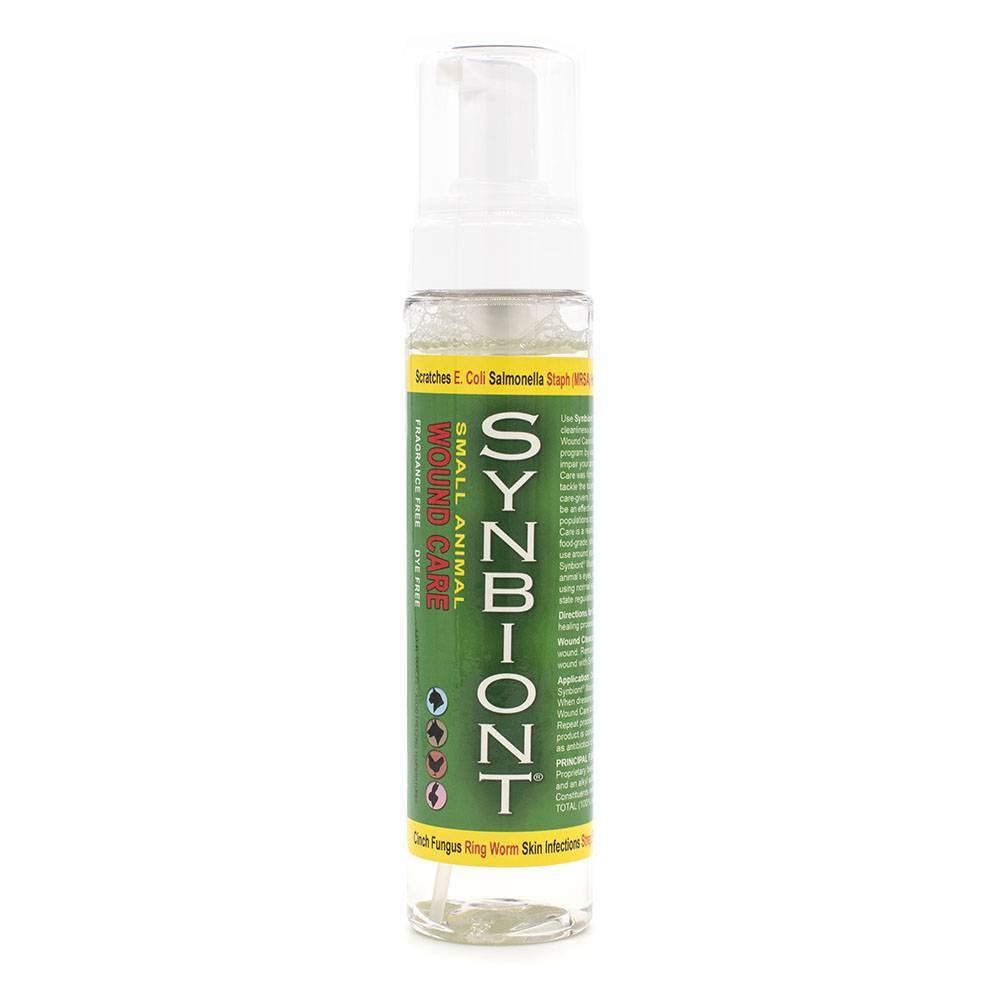 Synbiont is a wound cleaner that is used to control infections, accelerate healing, and enhance recovery time in all animals. It can be used at post-surgical sites, on mange, hot spots, rashes, girth itch, and at ringworm sites. It is also safe to use around the eyes, ears, nose, and mouth. Its thicker texture will stick to wounds and dressings and will not sting when it is applied. It can be used with other topical wound treatments, but contact your pet's veterinarian regarding the proper application.